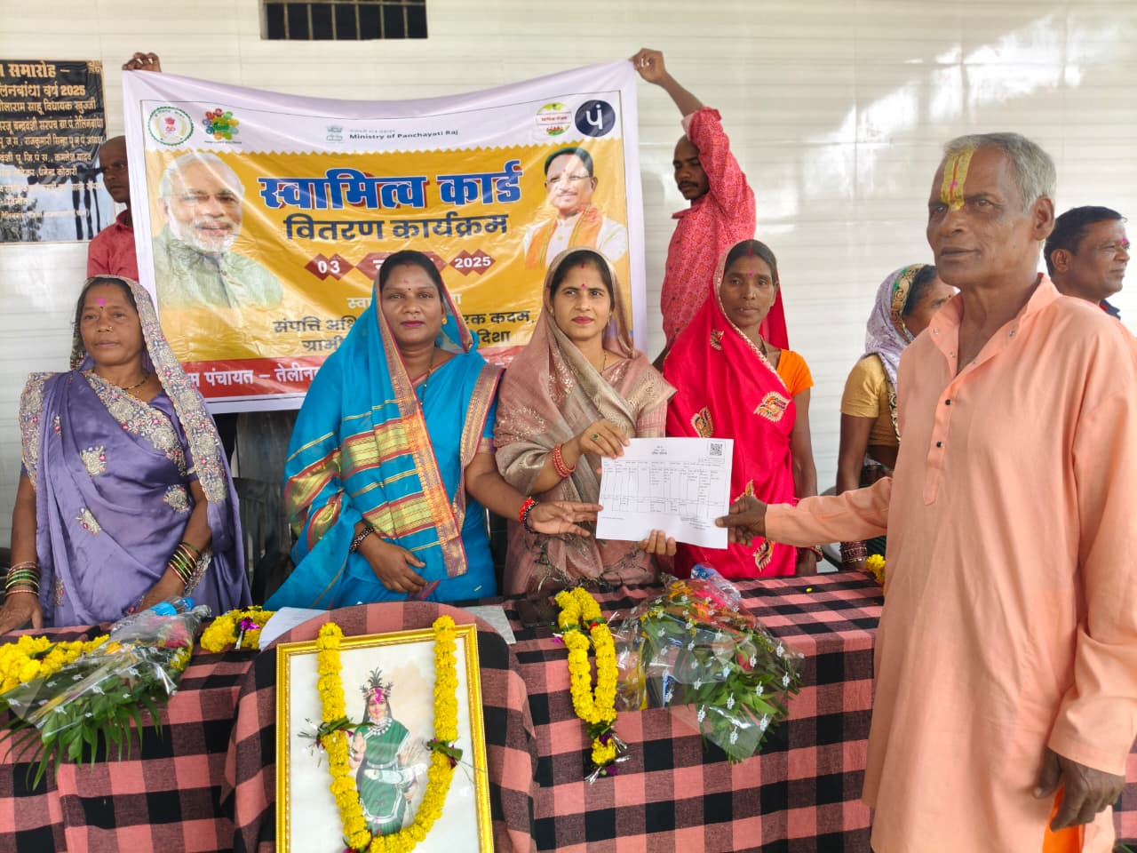 कार्यक्रम की शुरुआत छत्तीसगढ़ महतारी की पूजा अर्चना से हुई। जनप्रतिनिधियों ने ग्रामीणों को स्वामित्व प्रमाण पत्र वितरित किए और प्रधानमंत्री मोदी की योजना को ग्रामीण सशक्तिकरण की दिशा में एक बड़ा कदम बताया।
