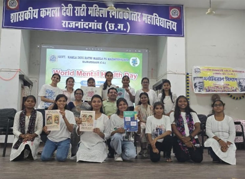 राजनांदगांव। शासकीय कमलादेवी राठी महिला स्नातकोत्तर महाविद्यालय, राजनांदगांव में 10 अक्टूबर 2025 को विश्व मानसिक स्वास्थ्य दिवस के उपलक्ष्य में विविध जागरूकता कार्यक्रमों का आयोजन किया गया। मनोविज्ञान विभाग के तत्वावधान में आयोजित इन कार्यक्रमों में छात्राओं ने बढ़-चढ़कर हिस्सा लिया।
