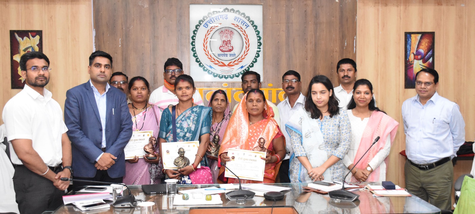 कलेक्टर ने छुरिया विकासखंड की ग्राम पंचायत साल्हे, मेटेपार और अरजकुण्ड, डोंगरगांव विकासखंड की ग्राम पंचायत खम्हेरा, आरगांव और कोटरा, डोंगरगढ़ विकासखंड की ग्राम पंचायत पलांदूर, चौथना और ठाकुरटोला, तथा राजनांदगांव विकासखंड की ग्राम पंचायत अंजोरा, खैरा और मोंहदी के सरपंचों को सम्मानित किया।