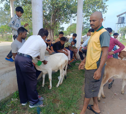 राजनांदगांव। पशुधन विकास विभाग के निर्देशानुसार ग्राम भोथीपार खुर्द पुराना में एक दिवसीय निःशुल्क पशु चिकित्सा शिविर का आयोजन किया गया। पशु चिकित्सा शिविर में ग्राम के सभी किसानों ने बढ़-चढ़ कर हिस्सा लिया। शिविर में 110 पशुओं का उपचार किया गया। इसी तरह दवा वितरण 150, बंध्याकरण 32, किलनी जू नाशक दवा छिड़काव 150, कृमि नाशक दवा पान 115, गर्भ परीक्षण 1, बांझपन उपचार 1, ब्लड सैंपल 10, सीरम सैंपल 10, फिकल सैंपल 25 आदि कार्य किया गया। शिविर का लाभ 32 कृषकों ने लिया। शिविर से 136 पशुओं को लाभ हुआ। शिविर में सहायक पशु चिकित्सा क्षेत्राधिकारी सुनील कुमार शंखवार, पशु परिचारक देवानंद मेश्राम, दीपेंद्र सोनबोईर, ग्राम के किसान उमेश साहू, धन्नालाल साहू, राजेश यादव, गजाधर यादव, मुकेश यादव, दीनूराम यादव, रितेश साहू, केजनाथ यादव उपस्थित थे।