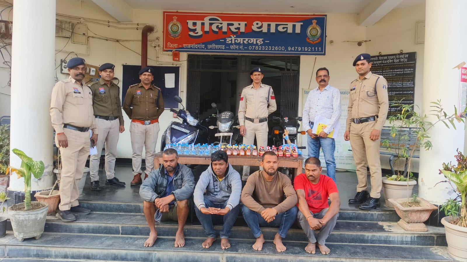 डोंगरगढ़ पुलिस की सख्त कार्रवाई : 4 आरोपी गिरफ्तार, 18.180 लीटर अवैध शराब जप्त