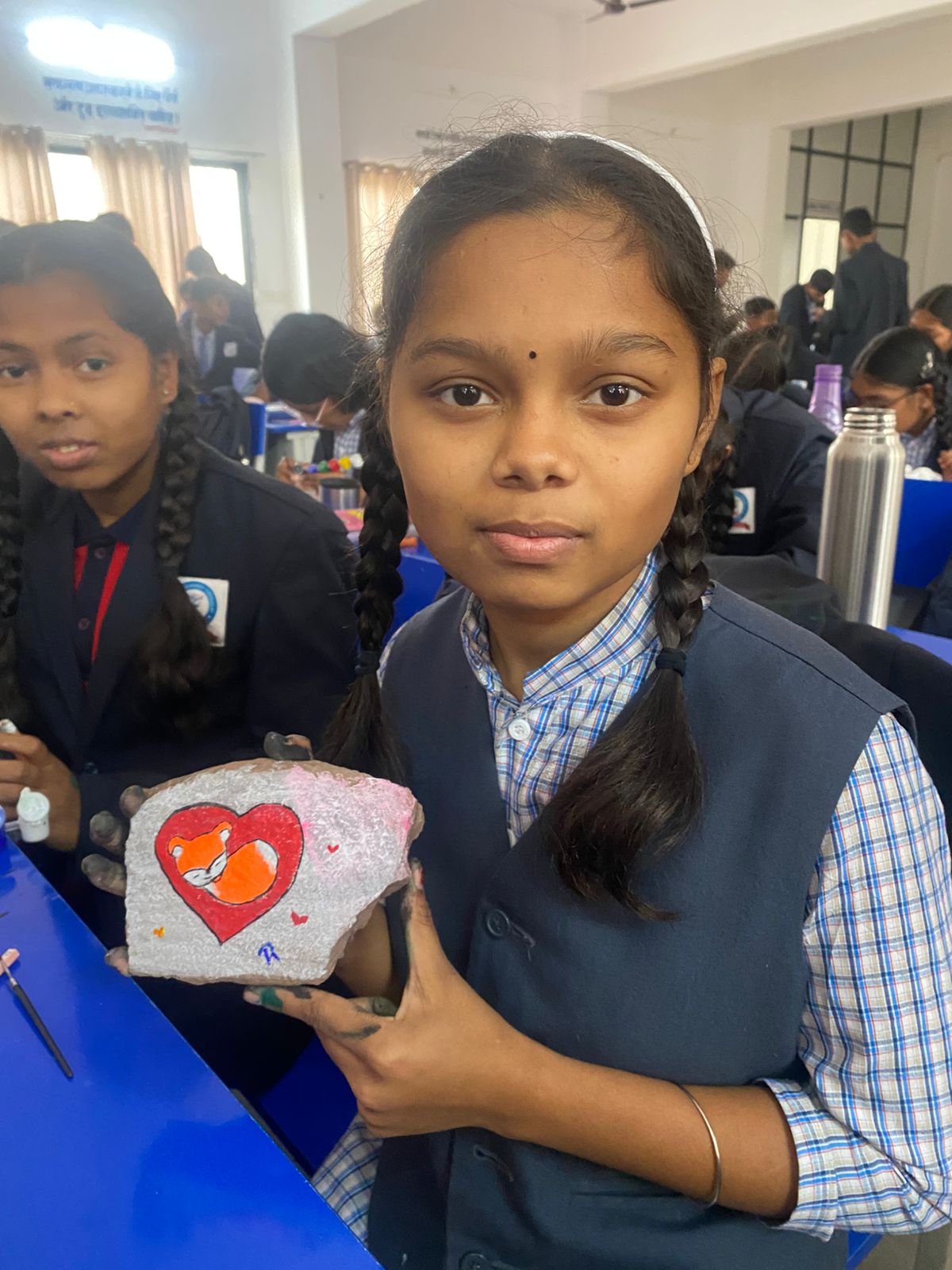इस गतिविधि में बच्चों ने साधारण पत्थरों को रंगों और डिजाइनों के जरिए आकर्षक कलाकृतियों में बदल दिया। रंगीन पत्थरों पर बनाए गए विभिन्न डिजाइनों ने सभी को मंत्रमुग्ध कर दिया। विद्यार्थियों ने अपनी कला के माध्यम से न केवल रचनात्मकता, बल्कि एकाग्रता, धैर्य और सृजनशील सोच जैसे महत्वपूर्ण गुण भी प्रदर्शित किए।