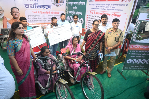 इस अवसर पर जिला पंचायत अध्यक्ष नम्रता सिंह एवं कलेक्टर तूलिका प्रजापति द्वारा ग्राम दीघवाही (वि.ख. मानपुर) की सुश्री बिमलेश मंडावी को बैटरी चालित ट्राइसाइकिल, ग्राम गोर्राटोला (वि.ख. अंबागढ़ चौकी) के रितेंद्र रोशन माहला एवं हमेंद्र कुमार कोरेटी को दिव्यांग विवाह प्रोत्साहन योजना के तहत 50,000 रूपये के चेक प्रदान किए गए।