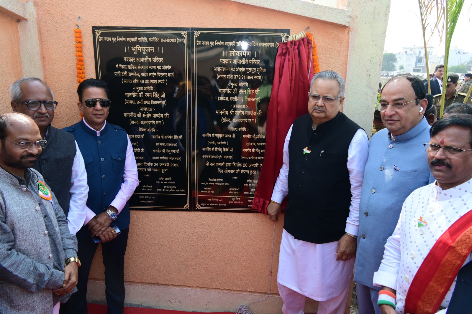 राजनांदगांव। विधानसभा अध्यक्ष डॉ. रमन सिंह ने आज 10 एकड़ में निर्मित पत्रकार आवासीय परिसर का लोकार्पण किया। इस अवसर पर उन्होंने 3 करोड़ 79 लाख 91 हजार रुपये की लागत से निर्मित इस आवासीय परिसर का उद्घाटन किया और 49 लाख रुपये की लागत से पानी टंकी, सम्पवेल एवं पाइपलाइन विस्तार के लिए भूमिपूजन भी किया।