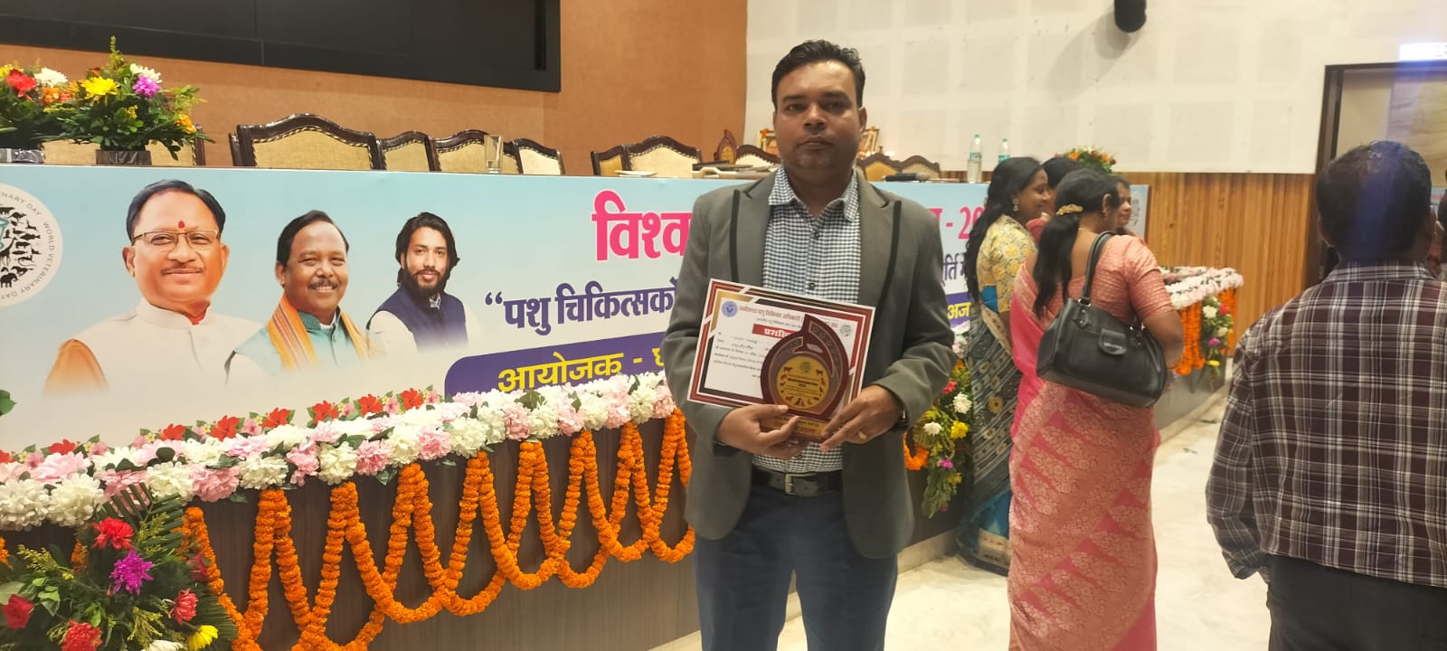 राजनांदगांव। विश्व पशु चिकित्सा दिवस के अवसर पर राजनांदगांव जिले के जिला पशु चिकित्सालय में पदस्थ वेटनरी सर्जन डॉ. तरूण रामटेके को उनके उत्कृष्ट योगदान के लिए कृषि एवं पशुपालन मंत्री रामविचार नेताम ने प्रशस्ति पत्र और स्मृति चिन्ह देकर सम्मानित किया।