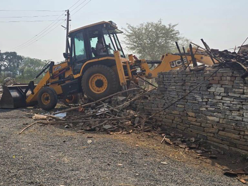 राजनांदगांव। जिला प्रशासन द्वारा शासकीय भूमि पर किए गए अतिक्रमण पर कार्रवाई करते हुए शासकीय जमीन को अतिक्रमण मुक्त किया जा रहा है। इसी कड़ी में डोंगरगांव तहसील के ग्राम अर्जुनी में महतारी सदन हेतु चिन्हित शासकीय भूमि पर नेमुक निषाद द्वारा अतिक्रमण कर मकान बनाया गया था, जिसे नोटिस देने के पश्चात भी नहीं हटाया गया। जिस पर राजस्व विभाग द्वारा पुलिस विभाग के सहयोग से पंचायती राज धारा 56 के तहत शासकीय भूमि पर किए गए अतिक्रमण को हटाने की कार्रवाई की गई। इस दौरान तहसीलदार डोंगरगांव सहित राजस्व एवं पुलिस विभाग के अधिकारी उपस्थत थे।
