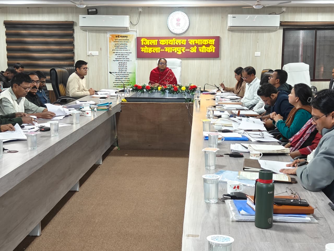 बैठक में जिला पंचायत सीईओ श्रीमती भारती चन्द्रकार, अपर कलेक्टर जीआर मरकाम, एसडीएम मोहला हेमेन्द्र भुआर्य, एसडीएम मानपुर अमित नाथ योगी, डिप्टी कलेक्टर डीआर ध्रुव सहित विभिन्न विभागों के अधिकारी उपस्थित रहे।