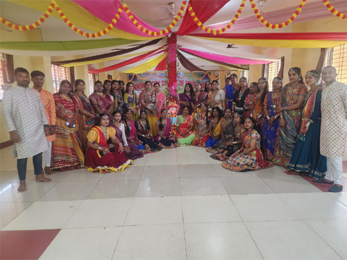 गरबा की थाप पर सजे-धजे विद्यार्थियों ने रंग-बिरंगे परिधानों में शानदार प्रस्तुति दी। आयोजन के अंत में सभी को हलवा-पूरी का प्रसाद वितरित किया गया।