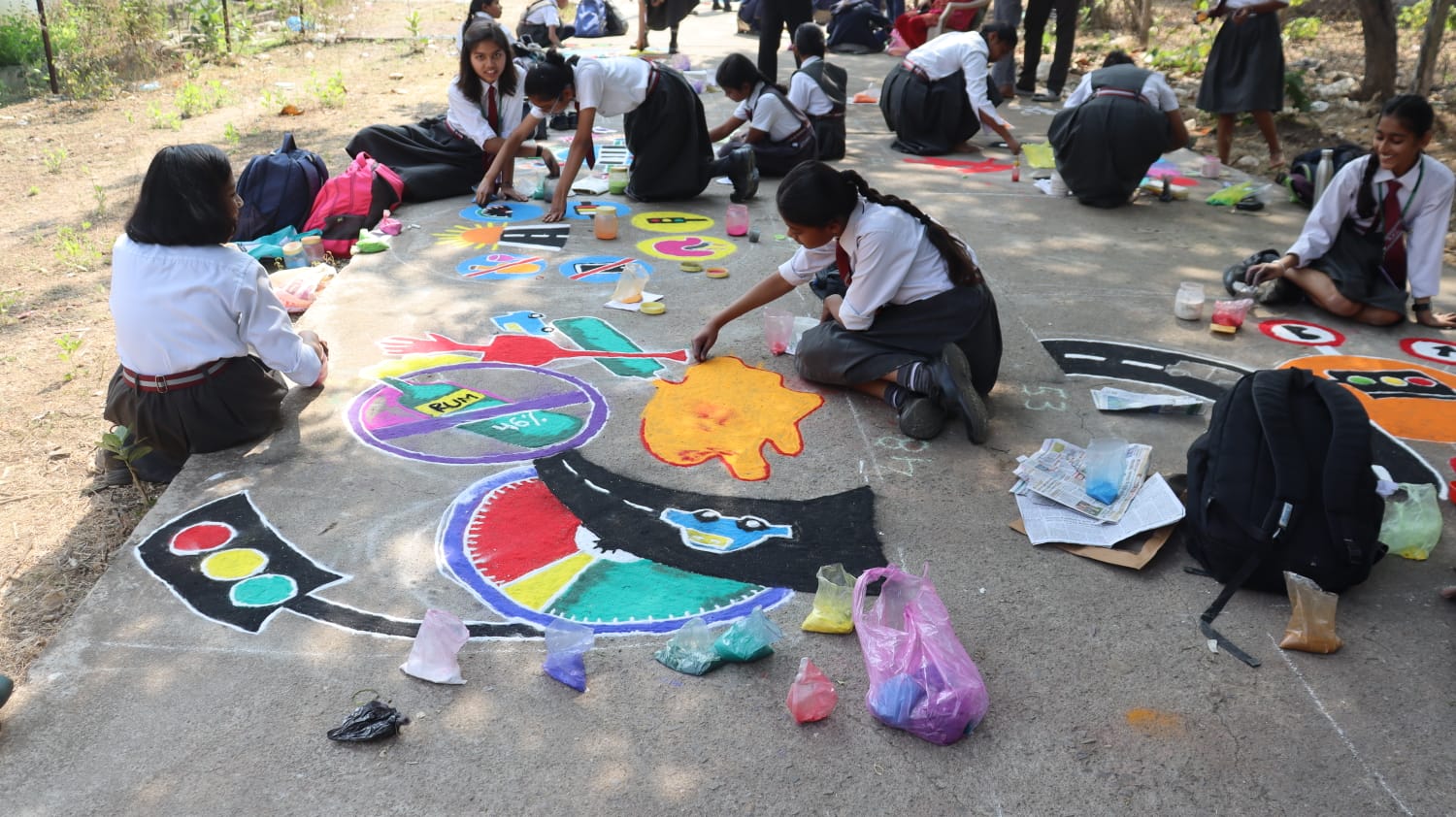 सड़क सुरक्षा माह : रंगोली प्रतियोगिता में 190 विद्यार्थियों ने दिखाई रचनात्मकता