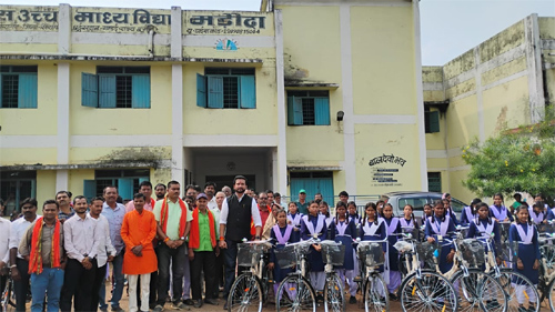 खैरागढ़। छत्तीसगढ़ शासन की महत्वाकांक्षी सरस्वती साइकिल योजना के तहत खैरागढ़ ब्लॉक के विभिन्न हाईस्कूलों-बफरा, मड़ौदा और अतरिया में अध्ययनरत कक्षा 9वीं की छात्राओं को निःशुल्क साइकिल प्रदान की गई। इस अवसर पर आयोजित सादे किंतु गरिमामय कार्यक्रम में मुख्य अतिथि के रूप में जिला पंचायत उपाध्यक्ष विक्रांत सिंह उपस्थित रहे।