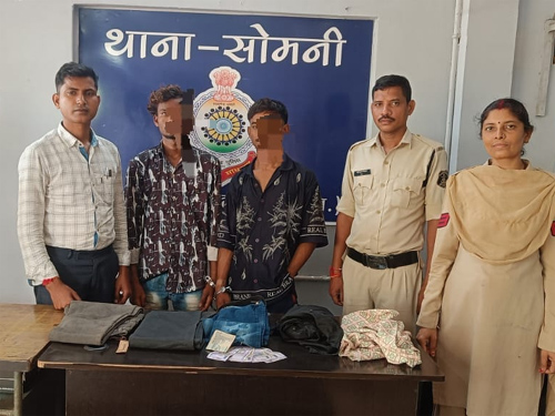 राजनांदगांव। सोमनी साप्ताहिक बाजार में पर्स और कपड़े की झपटमारी करने वाले दो आरोपियों को सोमनी पुलिस ने त्वरित कार्रवाई करते हुए गिरफ्तार कर लिया। पकड़े गए आरोपियों में भूषण निषाद उर्फ बाउ (21 वर्ष) निवासी ग्राम विरेशरभांठा, थाना पुलगांव, जिला-दुर्ग और पूरन निषाद (19 वर्ष) निवासी ग्राम मडियापार, थाना-बोरी, जिला दुर्ग शामिल हैं।
