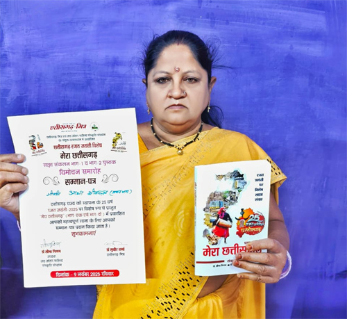 पेशे से पत्रकार श्रीमती श्रीवास्तव को हाल ही में जय जोहार साहित्य समिति रायपुर द्वारा भी सम्मानित किया गया। यह सम्मान उन्हें ‘मेरा छत्तीसगढ़’ ग्रंथ में प्रकाशित उनके आलेख ‘छत्तीसगढ़ में स्वास्थ्य सुविधाएं’ के लिए दिया गया। यह पुस्तक छत्तीसगढ़ रजत जयंती विशेष समारोह के अवसर पर रायपुर के वृंदावन हाल, सिविल लाइन में विमोचित की गई। आयोजन छत्तीसगढ़ मित्र और जय जोहार साहित्य संस्था के संयुक्त तत्वावधान में हुआ, जिसमें श्रीमती श्रीवास्तव ने राजनांदगांव जिले का प्रतिनिधित्व किया।
