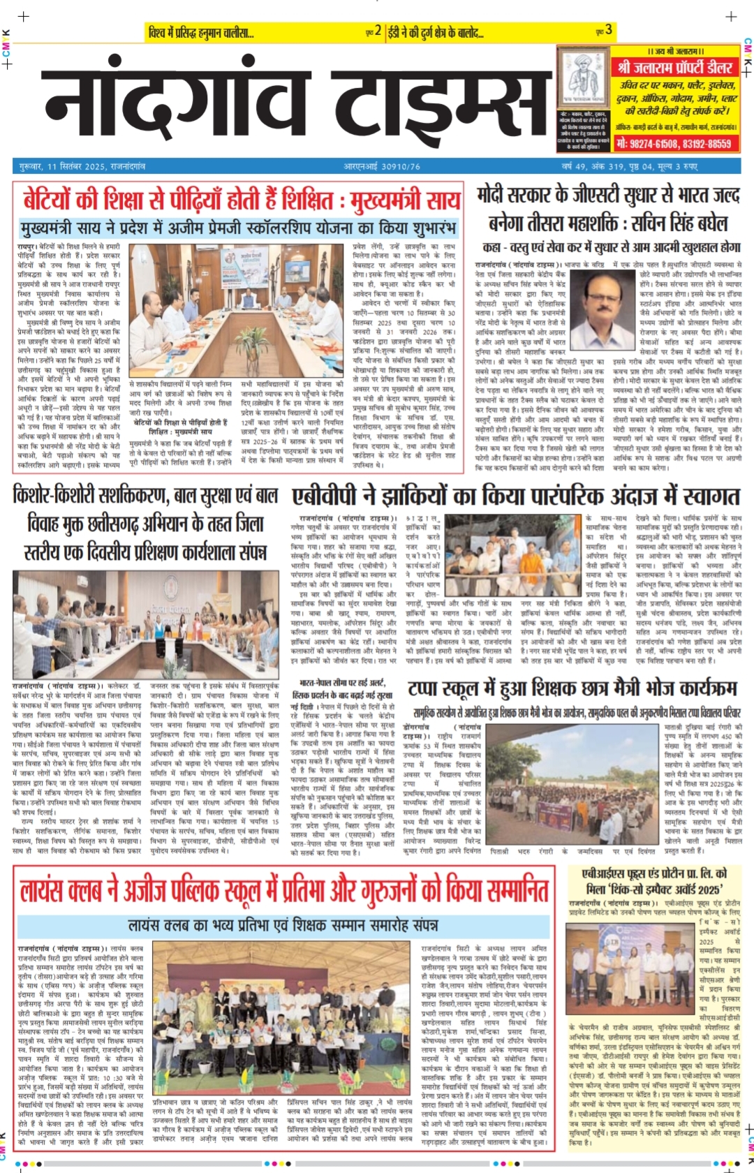 साइट के कुछ तत्वों में उपयोगकर्ताओं द्वारा प्रस्तुत सामग्री ( समाचार / वीडियो/फोटो आदि) शामिल होंगी. NandgaonTimes इस तरह के सामग्रियों के लिए कोई जिम्मेदारी स्वीकार नहीं करता। NandgaonTimes में प्रकाशित ऐसी सामग्री के लिए संवाददाता/खबर देने वाला स्वयं जिम्मेदार होगा, NandgaonTimes या उसके संपादक की कोई जिम्मेदारी नहीं होगी।