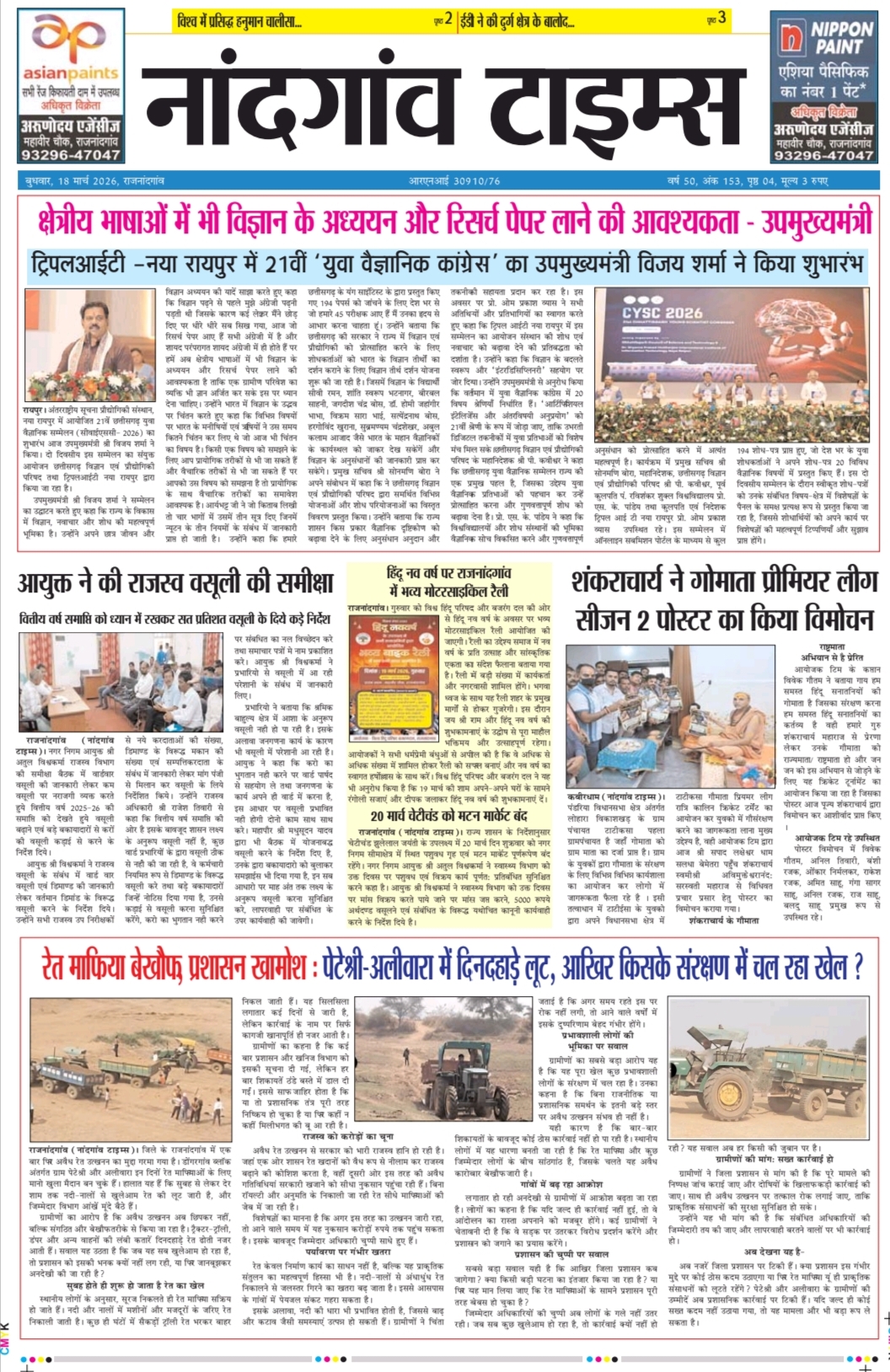 साइट के कुछ तत्वों में उपयोगकर्ताओं द्वारा प्रस्तुत सामग्री ( समाचार / वीडियो/फोटो आदि) शामिल होंगी. NandgaonTimes इस तरह के सामग्रियों के लिए कोई जिम्मेदारी स्वीकार नहीं करता। NandgaonTimes में प्रकाशित ऐसी सामग्री के लिए संवाददाता/खबर देने वाला स्वयं जिम्मेदार होगा, NandgaonTimes या उसके संपादक की कोई जिम्मेदारी नहीं होगी।